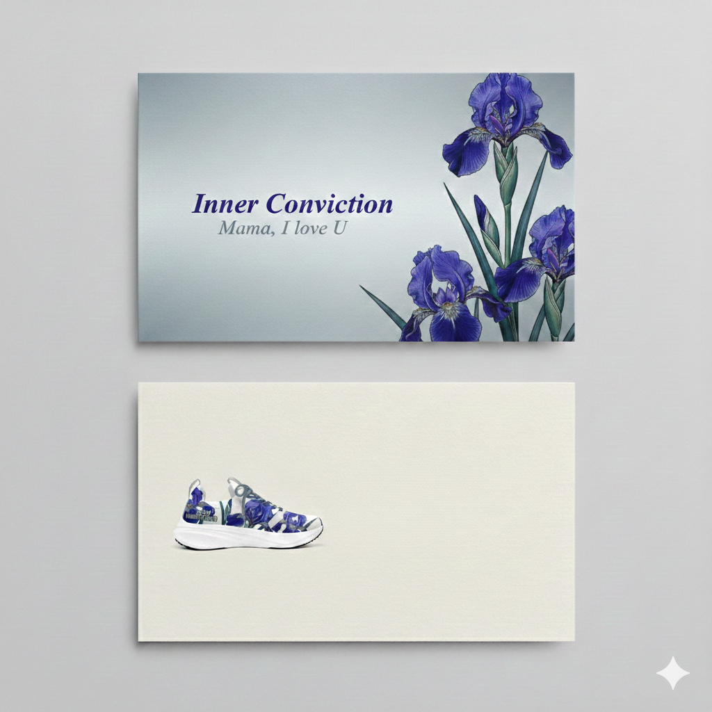 以「內在信念與智慧」為靈魂,表達對母親「堅韌精神」的致敬。強調鳶尾花代表的高貴氣質與標語「Inner Conviction」,象徵母親作為