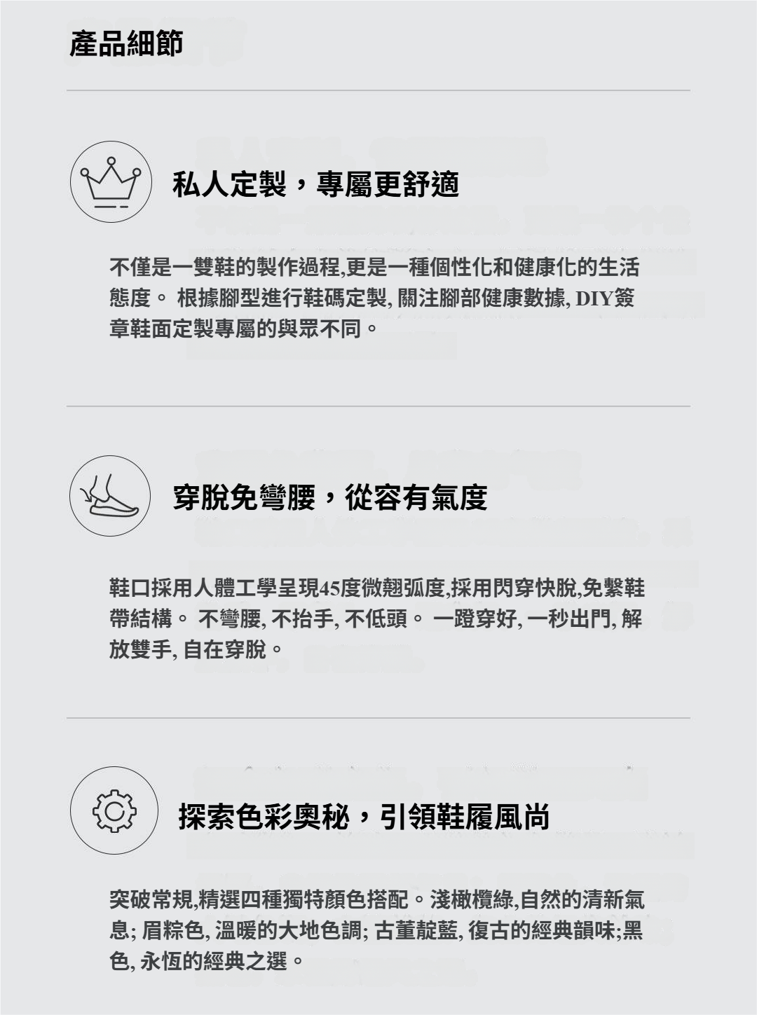鞋面採用高品質紗線, 一體成型, 編織工藝, 富有良好透氣性和舒適度, 鞋型設計融入運動元素, 採用簡約一腳蹬